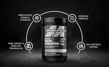 Muscletech Creatine 250g: Regular supplementation enhances strength, improves power output, and increases muscle volume.